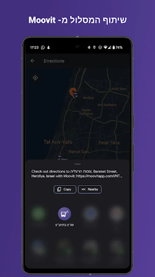 - Integration with Moovit - sharing the route from Moovit to the SNS in שנ"צ בתחבצ will automatically set an alarm clock for the stations where you get off.