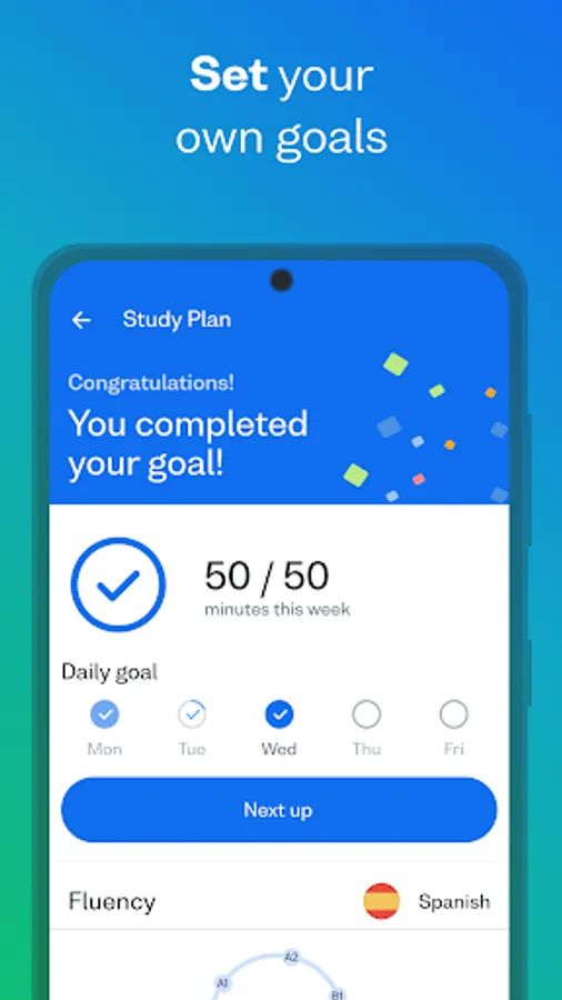 Whether youโre learning for business, travel, school, or pleasure, stay on track to meet your language learning goals with motivating features like daily streaks and regular checkpoint tests.
