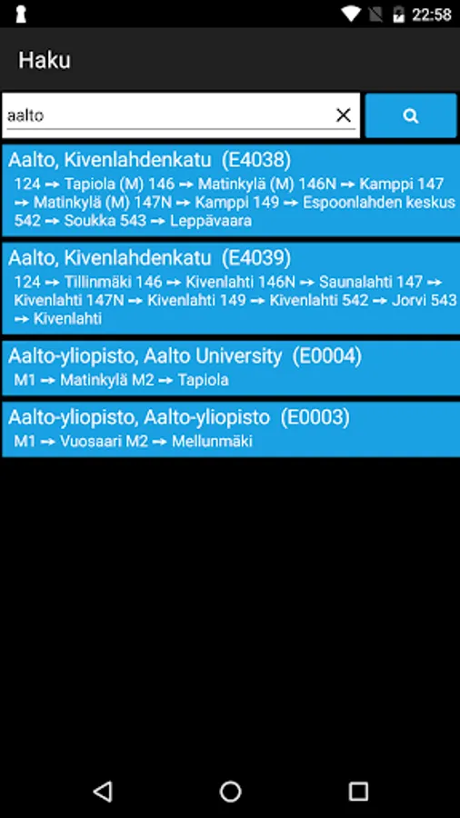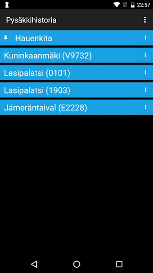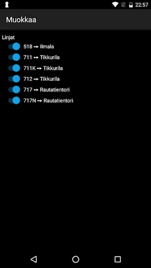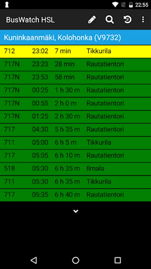 Displays the HSL area stop timetables (bus, metro, tram, city rail, Finland Suomenlinna ferry). The history of this stop can be attached to suosikkipysäkkejä and their order can be changed and add a comment stop.