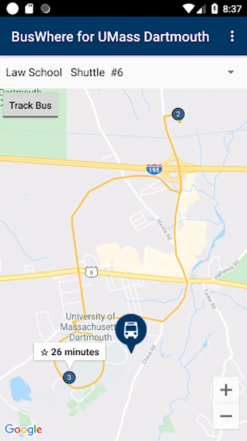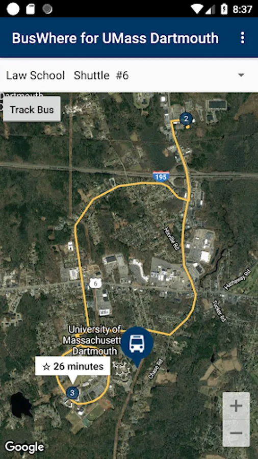 BusWhere for UMass Dartmouth is offered by the University to enhance the experience of Alvernia students and staff as they use the shuttle bus system. The BusWhere app will let you know when the next shuttle bus will arrive at any stop along the route.