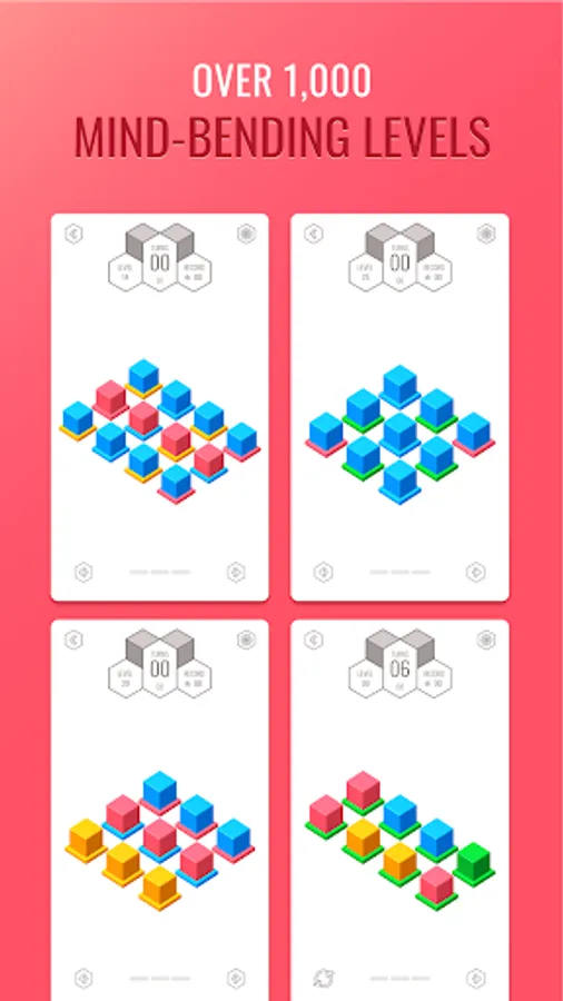 Over 1,000 levels can vary from 2 to 4 colors for the cubes to cycle through, challenging your abilities by increasing their difficulty even further!
