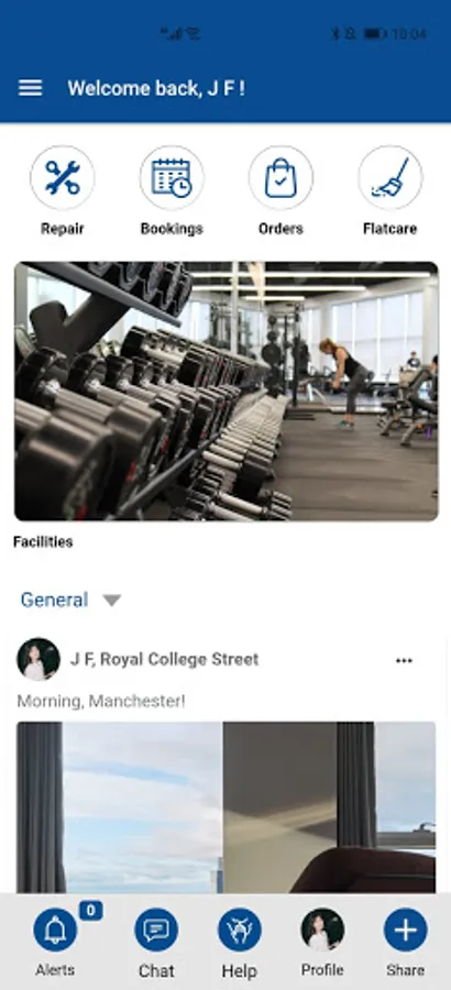 Our App brings the community together, for 121 and chat channels and neighbour to neighbour help. It is also the place to book the fitness studio, personal training, a hot desk or meeting room. It is the place to host an event such as 'pay day pizza night', or to book your place. It is also where we store the Home User Guide, videos of how things work, all your tenancy docs. You can message Housekeeping or the Maintenance Engineer and photo-log repairs.