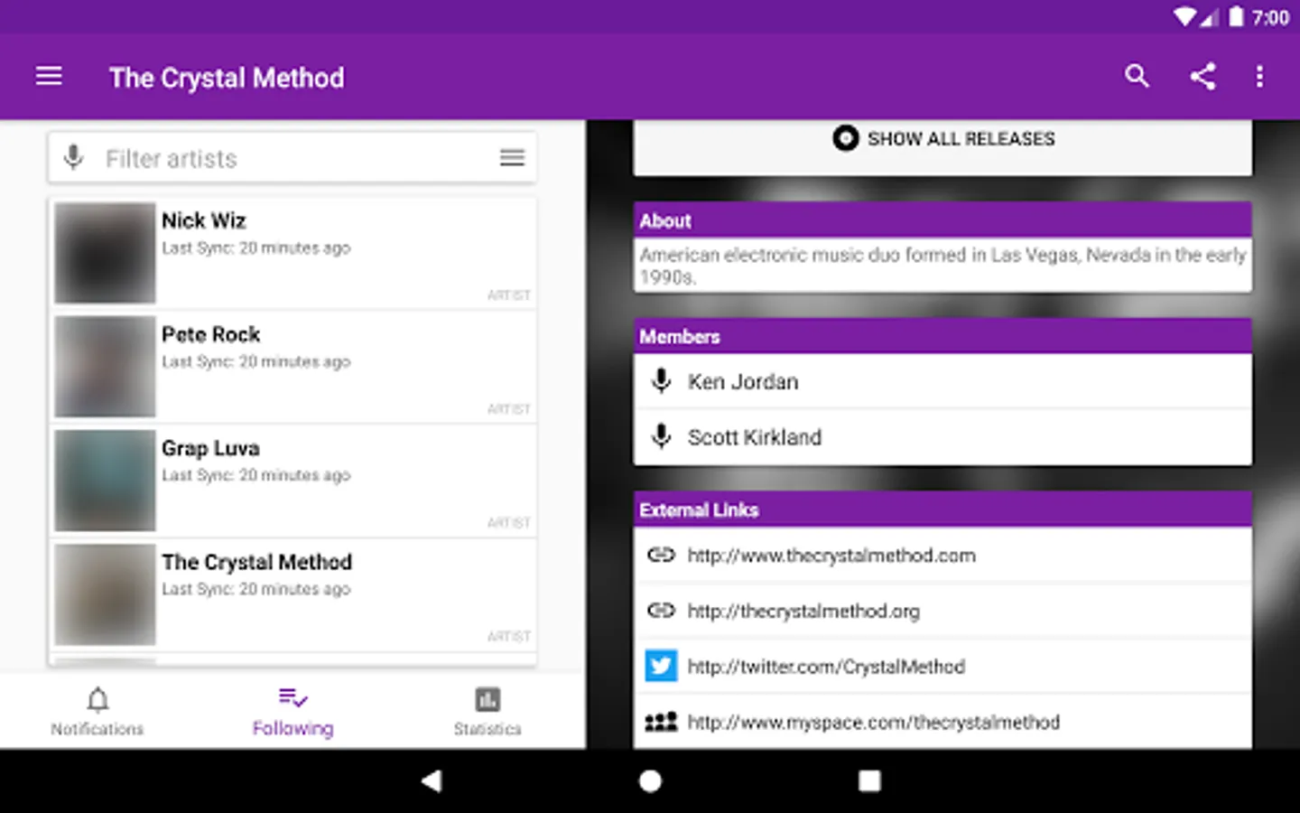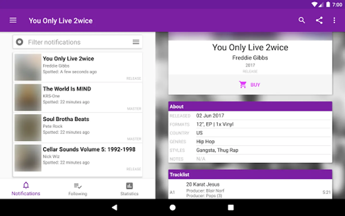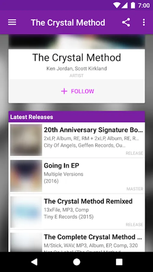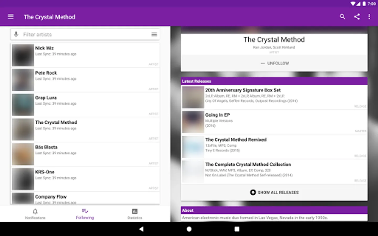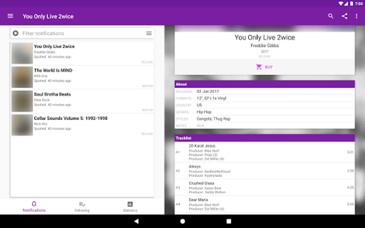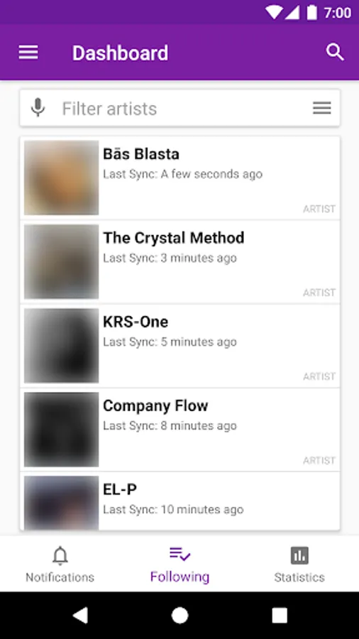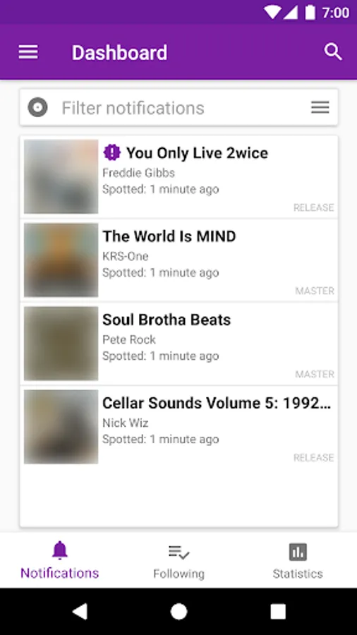 In order to receive notifications when new releases are added, make sure you are following at least one artist. The app will take care of the rest.