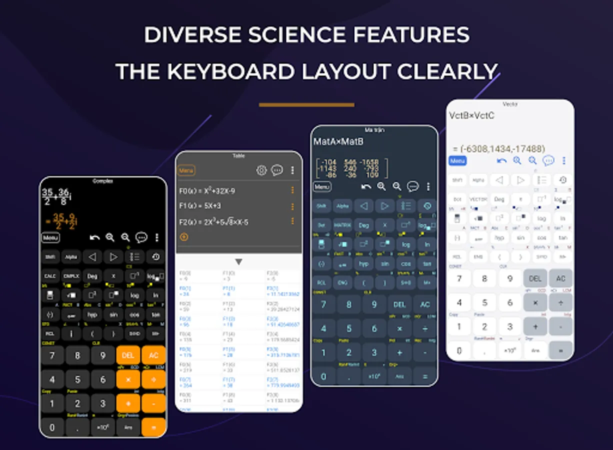 🔍 Diverse Computational Functions: From Complex Numbers, Vectors to Matrices, HiEdu Scientific Calculator offers a range of computational functions to handle even the most complex mathematical challenges. Whether you need a math calculator or a scientific calculator, HiEdu has you covered.