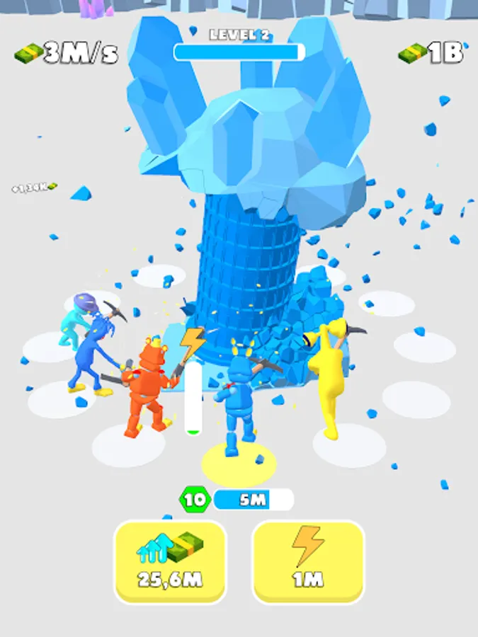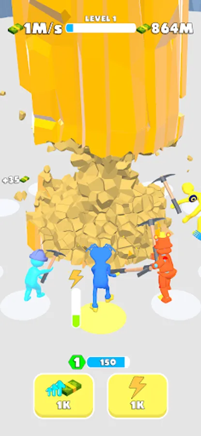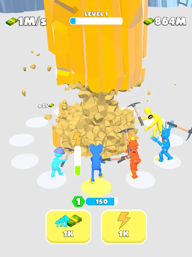 Unlock new types of ore! Earn and hire the strongest worker to earn even more! Upgrade your workers, speed up your workers and keep them awake! Get richer every second! And at the end of each level, carve a beautiful statue out of the ore!
