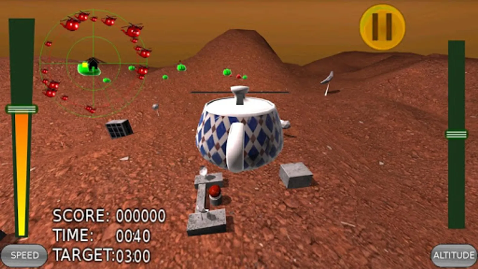 Repel the incoming wave of teapotcopters, in this 3D base-defense game!