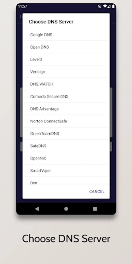 This app will allow you to choose from a list of free and reliable public DNS servers (primary and secondary DNS servers) like Google Public DNS, OpenDNS, etc.