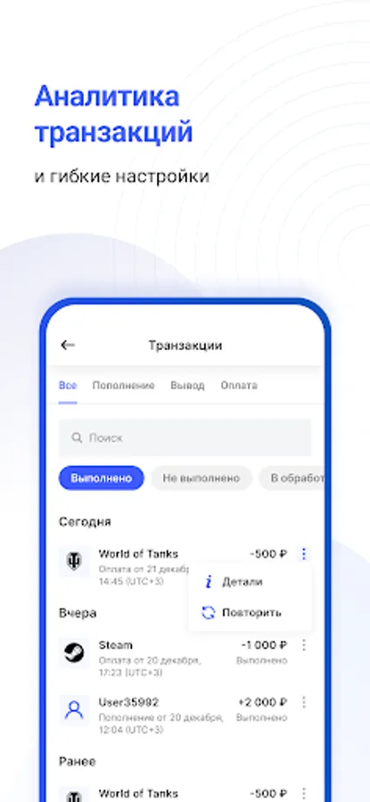 Широкий платежный функционал: