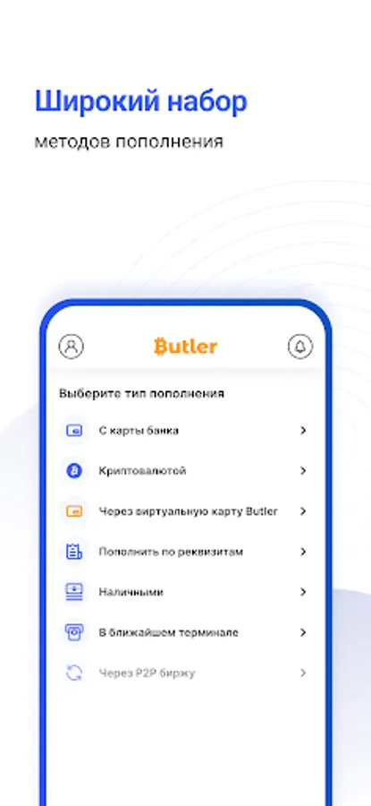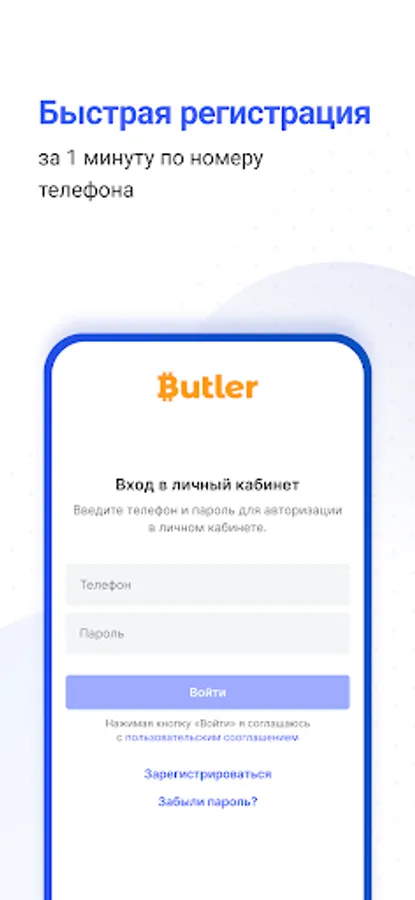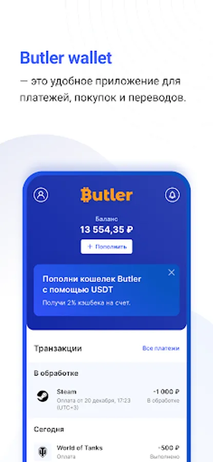 Butler wallet — это удобное приложение для платежей, покупок и переводов. Быстрая регистрация за 1 минуту по номеру телефона.