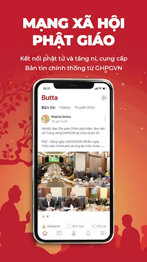Butta is an information social network specializing in Buddhist news, content, videos, created and connected from orthodox Buddhist news channels in Vietnam. Bringing useful content, improving the understanding of the community for the Buddhists as well as a place to convey the content, philosophy towards the community of monks and nuns.