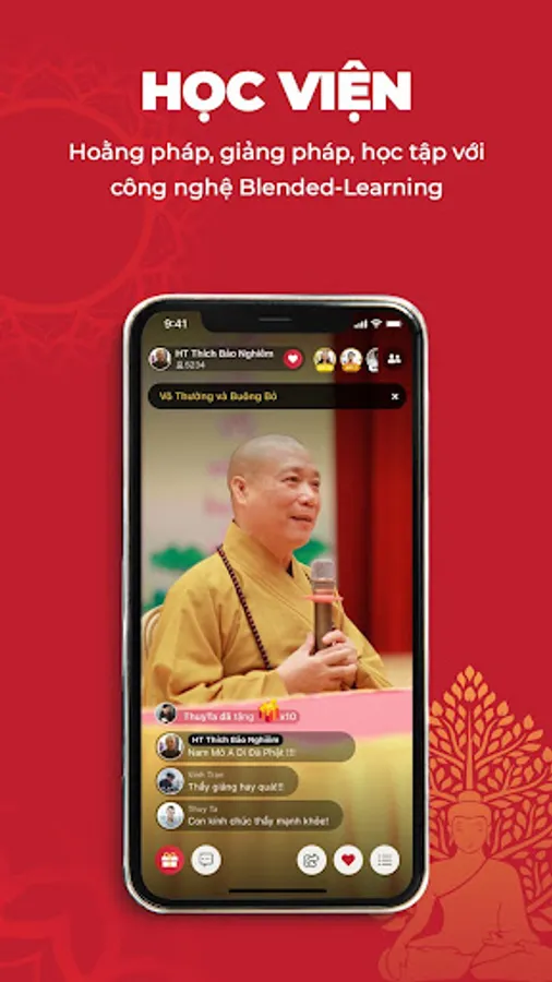 Buddhist monks and nuns experience the livestream feature on Butta's social network to remotely connect to the Dharma lecture. With the high technology platform applied to Butta, the livestream experience will always be smooth and clear so that the meaning and content are transmitted correctly and deeply.