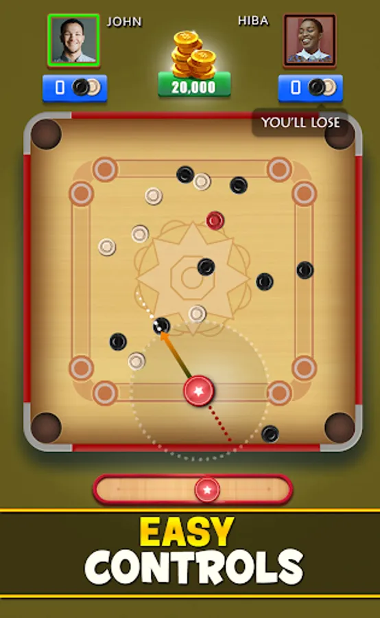 The game of Carrom is believed to have originated from the Indian subcontinent. The objective of play is to use a striker disk with a flick of the finger to make contact with and move lighter object disks called carrom men, which are thus propelled into one of four corner pockets. Lets pick the striker and become the King or Queen of the Carrom Club board game.