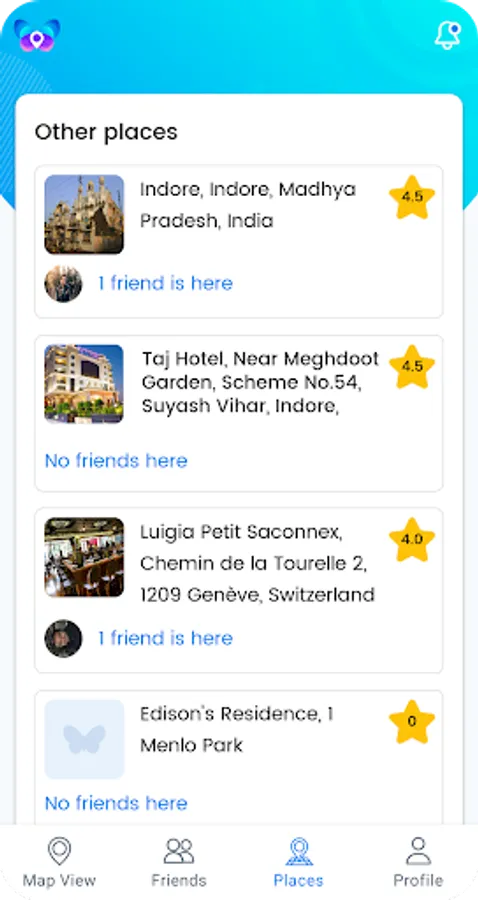 See your friends’ vibe-ins all over the world. Navigate to any place on the map to see their ratings and see who’s there right now.