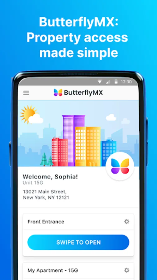 ButterflyMX allows you to open and manage doors & gates from your smartphone. Once our video intercom, keypad, elevator controls, package room, or key locker have been installed at your property, downloading this app will provide you with features such as video calling, virtual keys, delivery PINs, remote access, and much more - all designed to make property access simple for staff, residents, visitors, and deliveries. What’s more, all entries are recorded with a date- and time-stamped photo available for review in both the mobile app and on the property management dashboard.