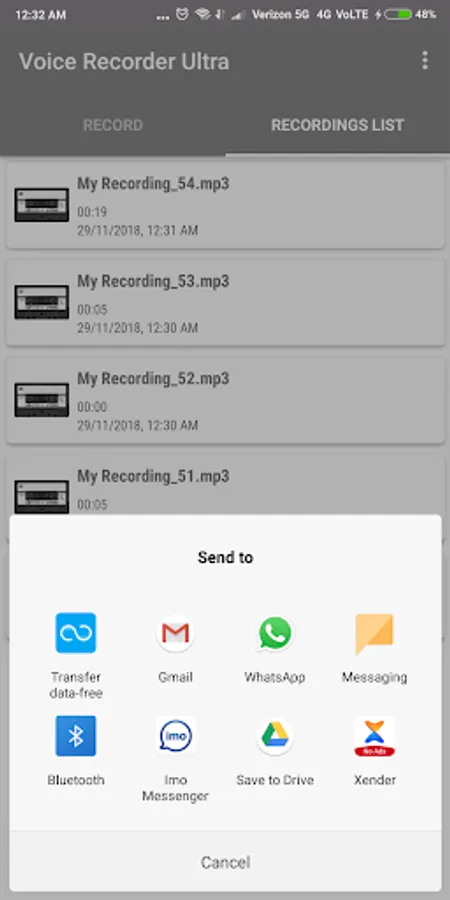 ★ Share recordings easily through email or messaging App and social media.