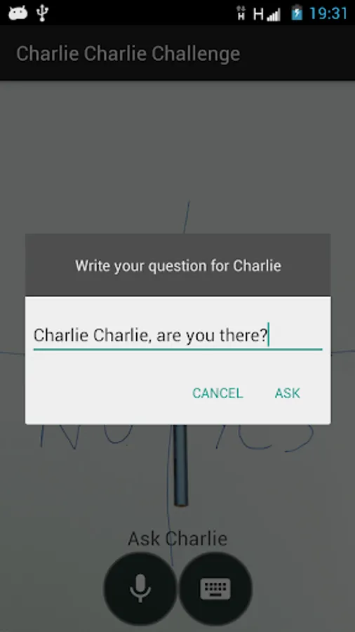 Now you can also write your questions to Charlie with your keyboard and make the Charlie Charlie Challenge regardless of the situation!