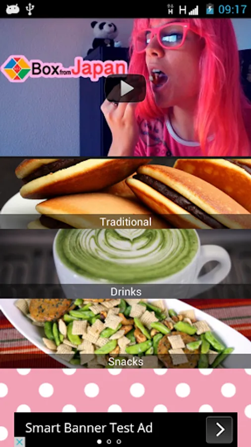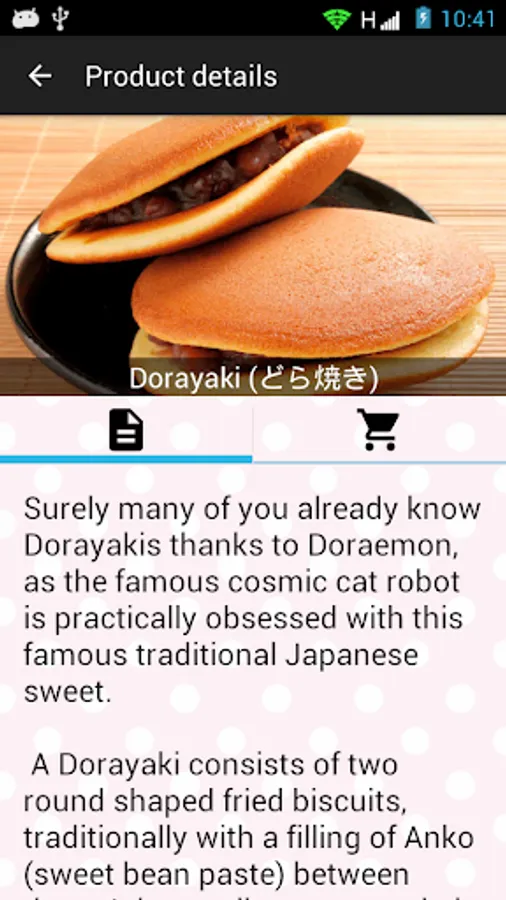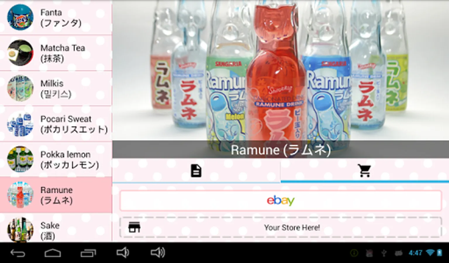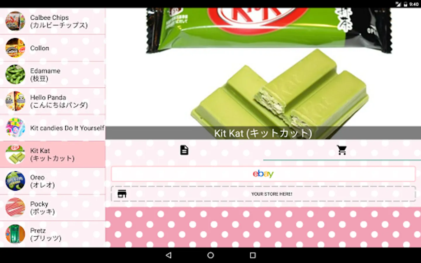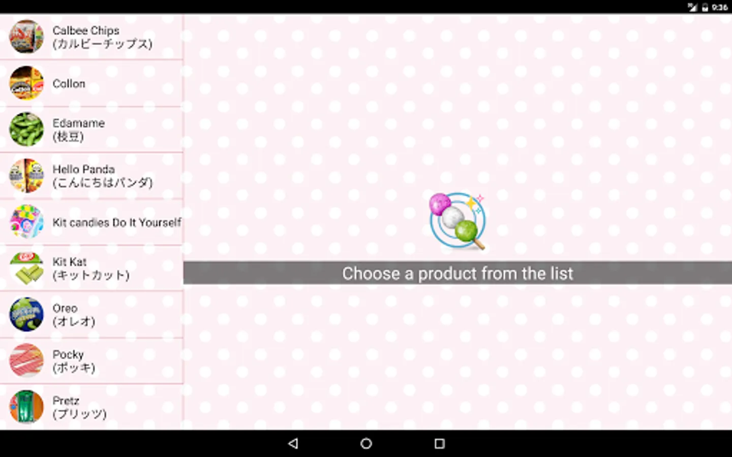 In our initial app version, we have 3 Japanese sweets categories: snacks (both sweet and salty), traditional sweets and drinks. Upon clicking on one of them, you will see the product list complete with pictures, descriptions and, if there are shops available for buying them, a link to its website or product page.