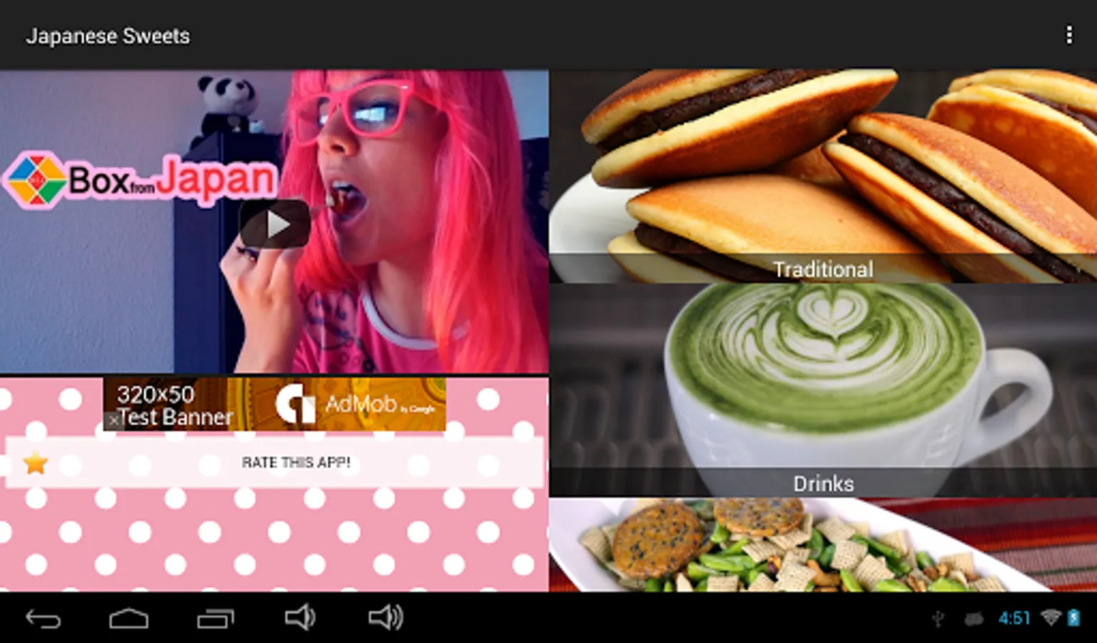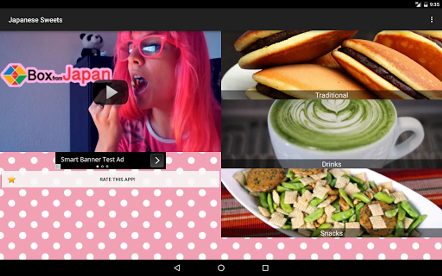 Don’t forget to rate Japanese Sweets app and leave a comment. Thanks to your suggestions and opinions we can make the app better and fill it with new and exciting features. With this goal in mind, the app uses by default Google Analytics to anonimously track app usage data, thank you very much for collaborate with us accepting this data tracking, that in no case contains personal or sensible information. If you don't agree with the usage data tracking, don't worry, you can disable the option in the "About" section of Japanese Sweets app.