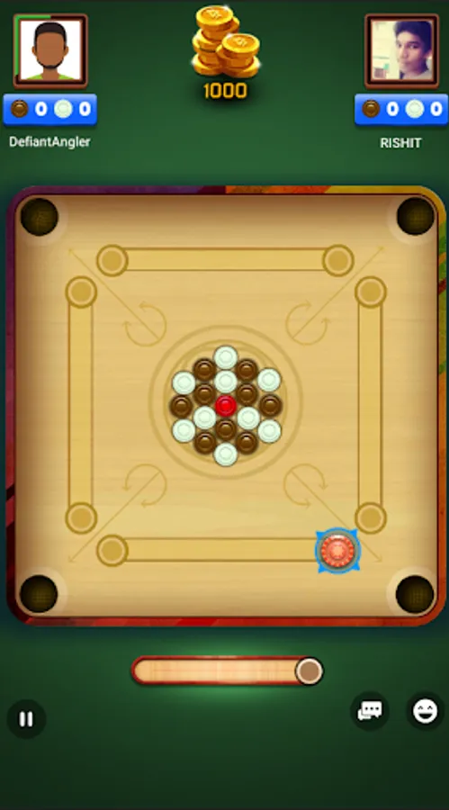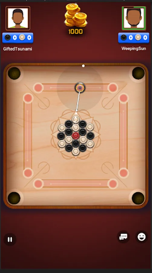 FREESTYLE CARROM: Points system, regardless of black and white, hits the black ball +10, hits the white ball +20, hits the red ball queen +50 in this freestyle carrom, the person with the highest score wins in the carrom board bot.