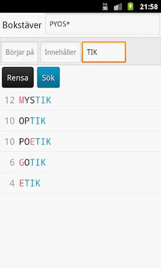 A fast and easy word helper! Perfect for games like Scrabble, Wordfeud, Wordsmith and Words with friends.