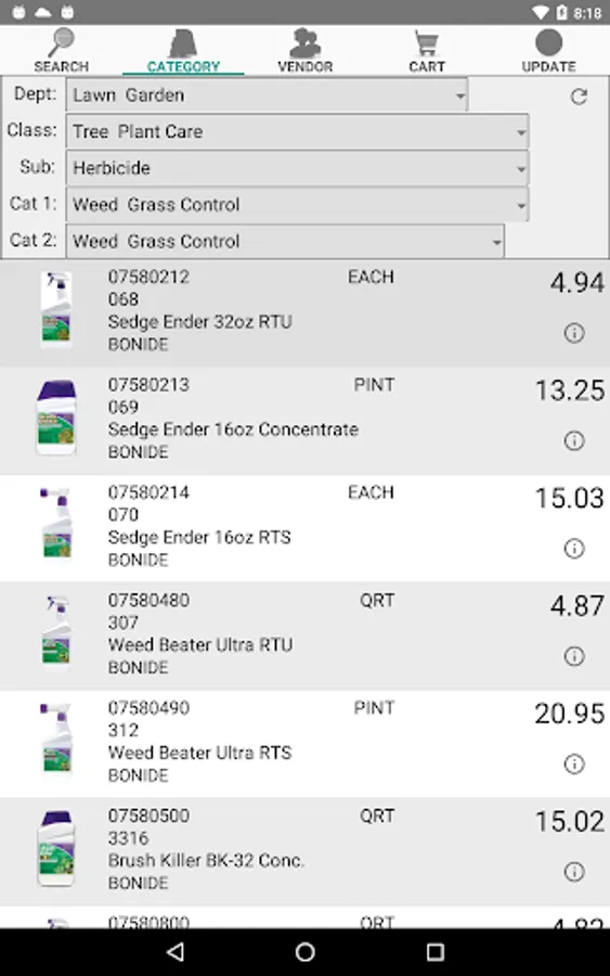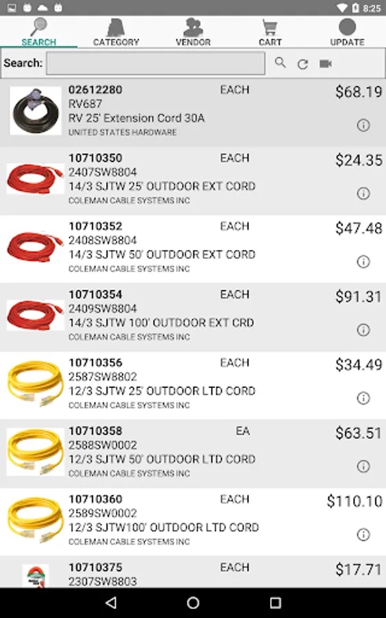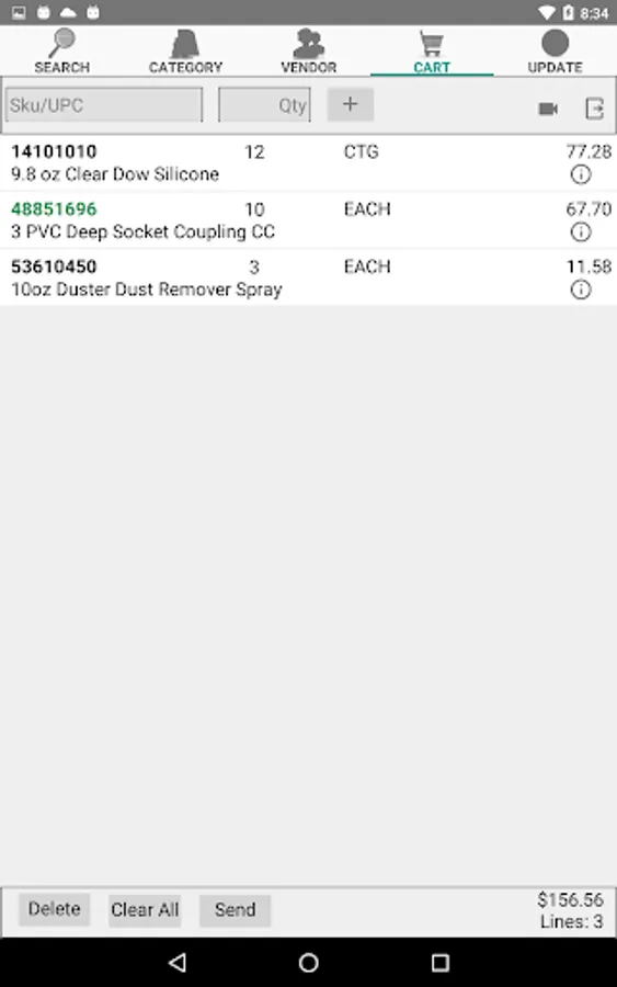 Use your smart phone / tablet to create and send electronic purchase orders to Buttery LLP. Search for product using the Buttery Sku number, manufacturer part number, description or upc. Search by department, class, subclass, etc. or by vendor name.