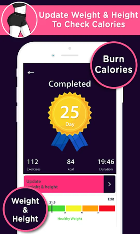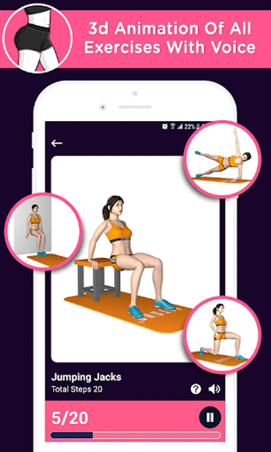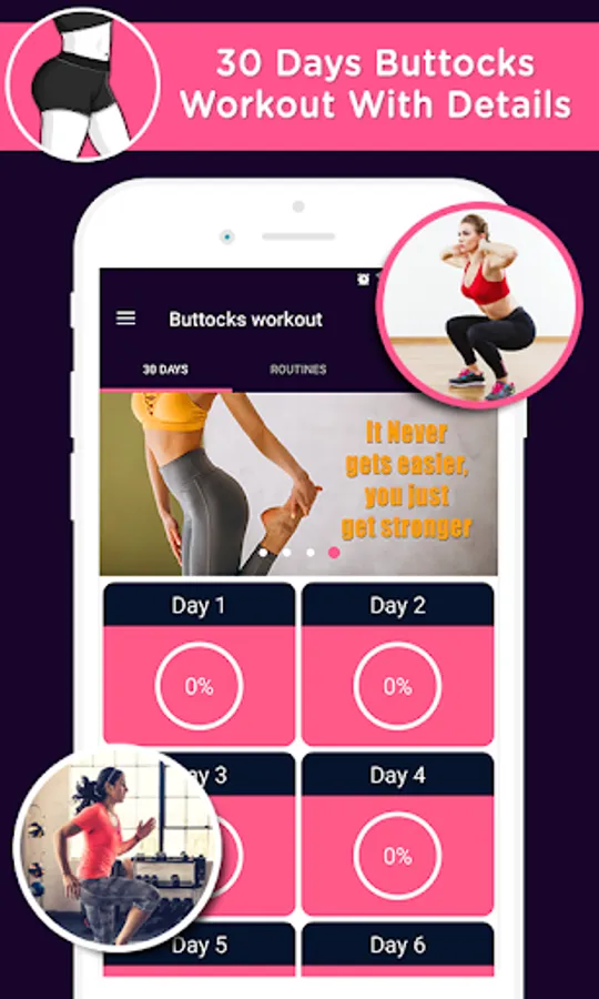 By following our workout, you will notice a change in your butt for using this app in a matter of days