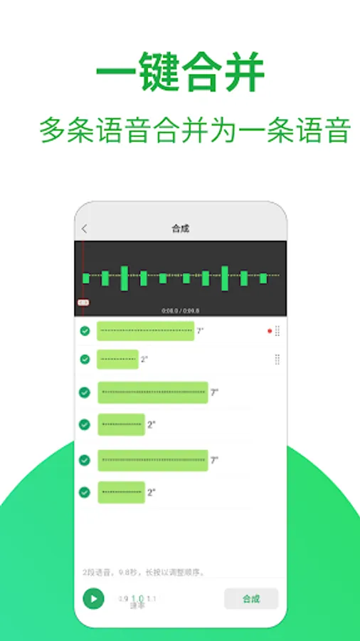 "Voice Synthesis, Forwarding and Exporting" has powerful functions, supporting WeChat voice export, WeChat voice merger and forwarding, WeChat voice merger, WeChat voice merger export to MP3, WeChat voice audio export and sharing, WeChat voice original sound forwarding, etc. It is suitable for lectures, office, learning and other scenarios , to solve multiple problems such as combining WeChat and QQ voice forwarding and saving;