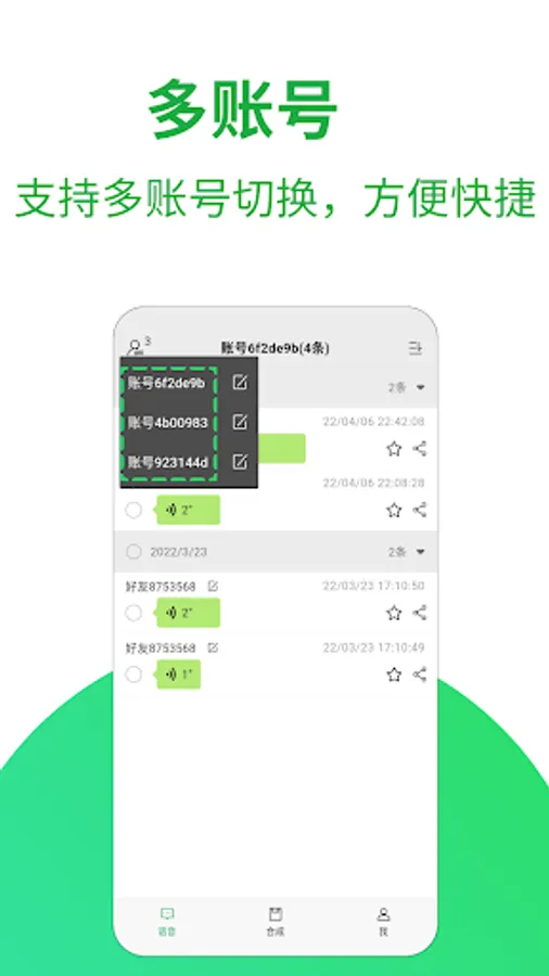 [Multi-account support] Don't worry if you have multiple WeChat and QQ accounts, "Speech Synthesis Forwarding and Export" supports multi-account switching, just switch the account to the one you want to export, and the operation is simple and fast!