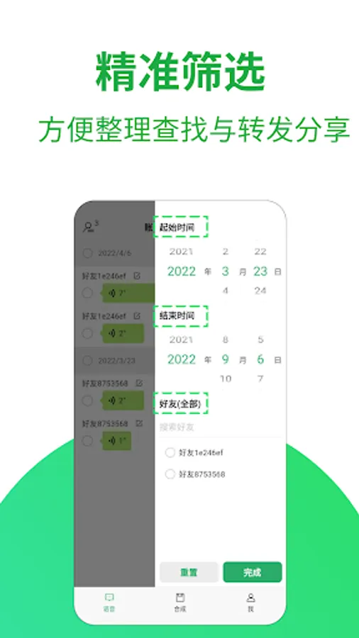 [Filter voice] You can choose to specify friends and group voices to export and synthesize, which is convenient and fast.