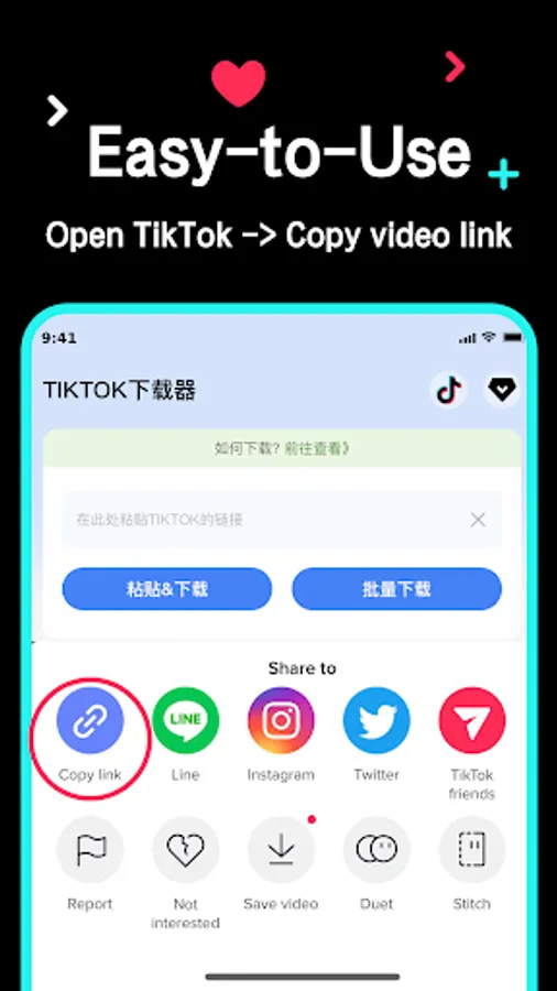 To download videos without a watermark, simply click “Share - Copy Link” on the TikTok video you want to download, then paste the link into TikTok Downloader No Watermark. It’s that easy!