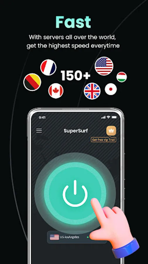 Looking for the best VPN? Download Supersurf VPN, get the fastest VPN connection, and never stop for anything. Thanks to our state-of-the-art encryption, you will stay safe online 24/7 without cybercriminals and advertisers tracking your every step. It’s an easy-to-use VPN app for Android, trusted by millions of users worldwide and praised by tech-professionals online.