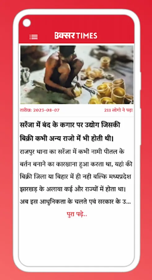 ये ऐप easy to use होने के साथ साथ Clean Interface भी रखता है। खास जिला Buxar News के लिए बनाया गया ऐप अभी डाउनलोड करें।