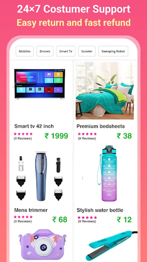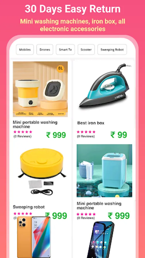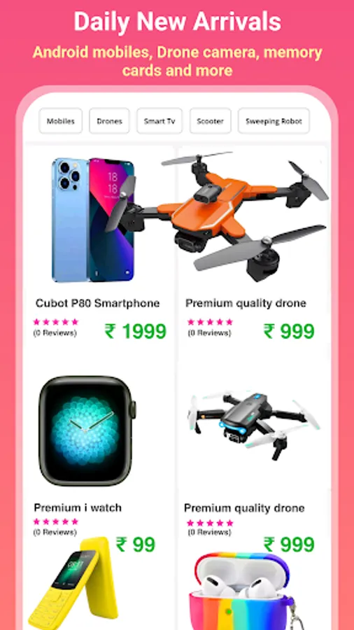 Electronics : Earphones, airpods, bluetooth speakers, smart watches, memory cards, mobile phones, android mobiles, feature mobiles, keypad mobiles, headset,obiles cover, Mobile chargers, data cables, USB cables, Mini portable washing machines, laptops, android smart tv, drone camera, camera, sweeping robots, vaccum cleaner, electric scooter, toys scooter, kids toys, etc
