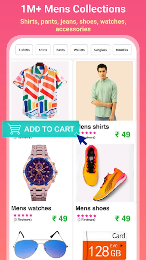 Mens : cotton shirts, formal shirts, trousers, printed shirts, floral shirts, cotton pants, formal pants, tie, mens innerwear, mens rings, polo t-shirts, t-shirts, round neck t-shirts, collor t-shirts, underwears, joggers, cargo pants, track suits, track pants, etc.