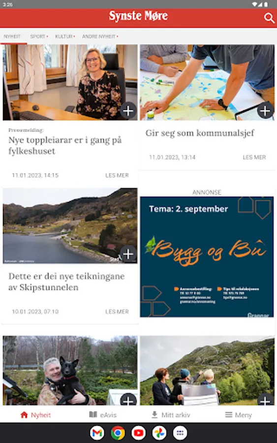 News feed and eAvis are open to subscribers, while the website and notifications are open to all users.