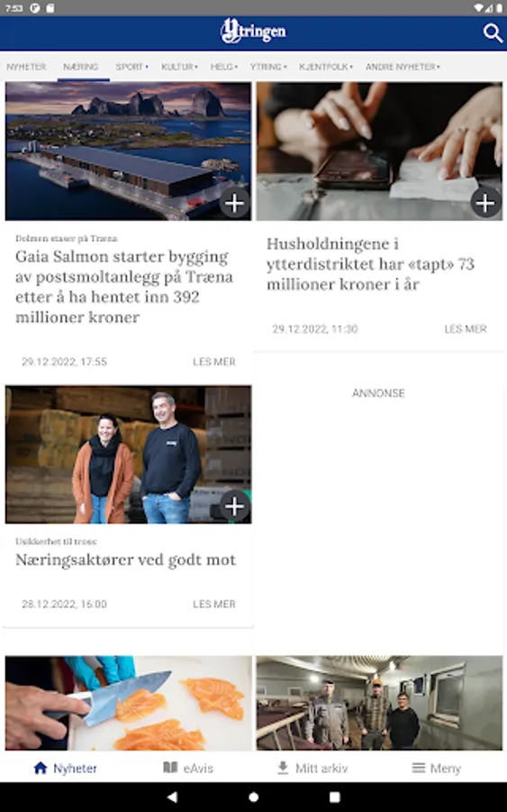 Nyhetsstrøm and eAvis are open to subscribers, while the website and notifications are open to all users.