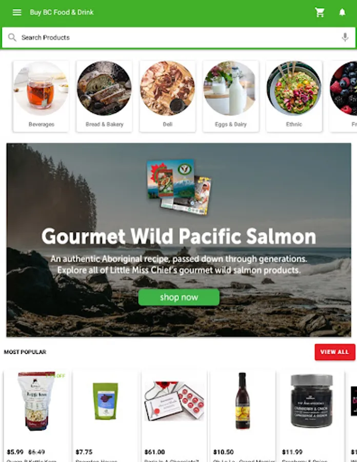Be the ultimate local shopper by purchasing your food and drink products made here in BC. Get great gourmet products from food producers right here in British Columbia. Most offer options for free delivery and local pickup. Order today and have it delivered right to your door!