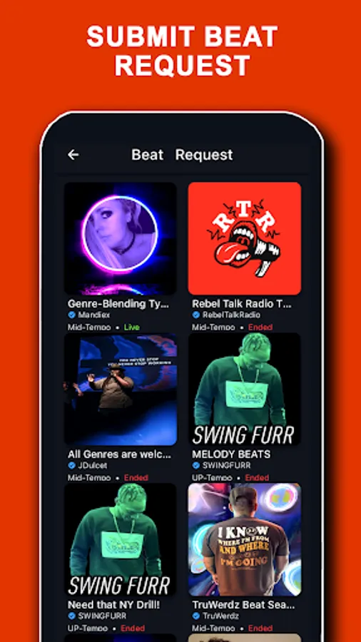 With the BuyBeats app you can listen to beats produced by top music producers from around the world. You can also create playlists, request certain beat types from producers, follow producers and other industry professionals, plus more. As a member, you are provided with a beat feed to receive the latest updates from those you follow.