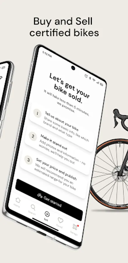 With the buycycle app, you can find out the value of your bike in under two minutes and create a sales ad right away. Simply add at least three photos and a few details about your bike. And if you are still uncertain about selling your bike, use the buycycle app to place your bike in a digital garage to track its value. You will receive notifications when the perfect time has come to upload it to Europe's largest marketplace for used bikes. By posting a sales ad on buycycle, you can reach cycling enthusiasts all over Europe and sell your bike in no time.