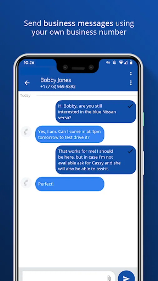 • Access to your business contacts straight from the app. Call or text your contact with a single click