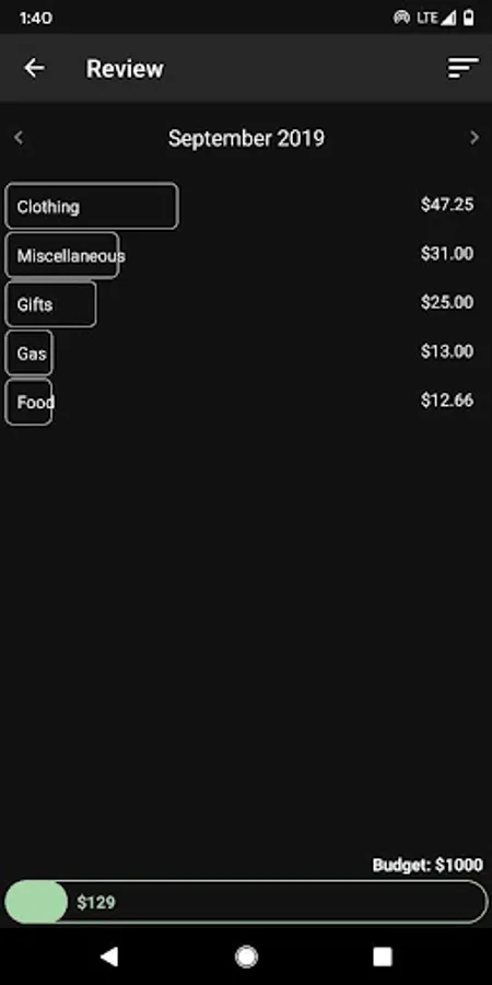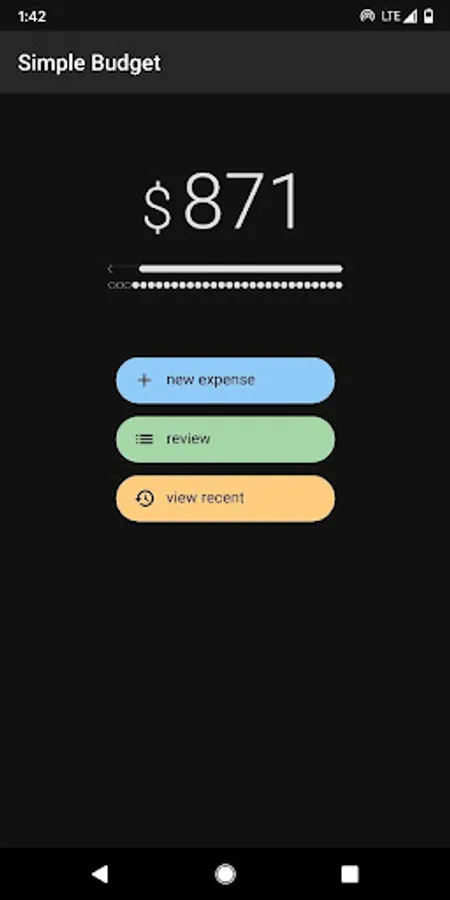 Recording an expense takes just about 3 seconds, so you can whip out your phone while the cashier rings you up, type in the total, and forget about it forever. The home screen keeps you up to date with how much money you have left to spend along with a progress bar to provide a visualization of the percent left.
