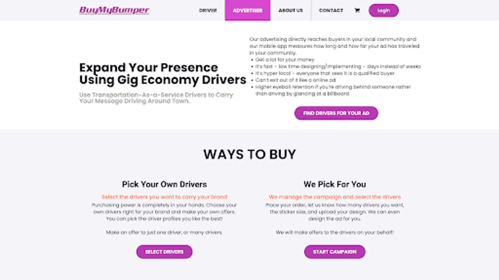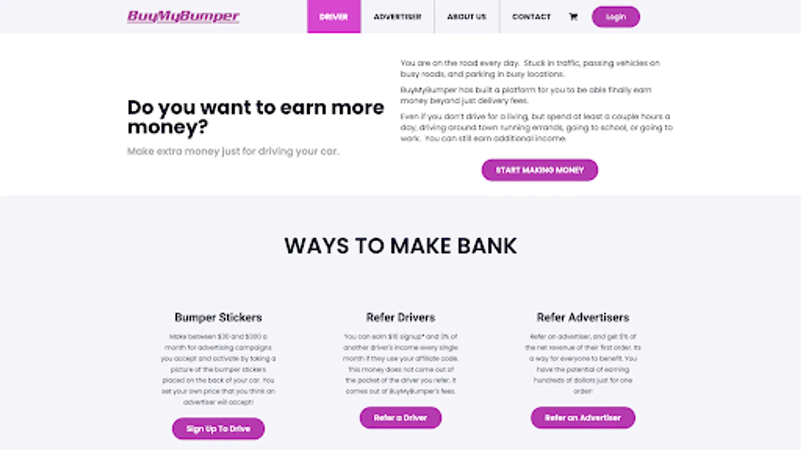BuyMyBumper is a way for drivers who use their own vehicle for delivery services or rideshare services to earn money while they drive.