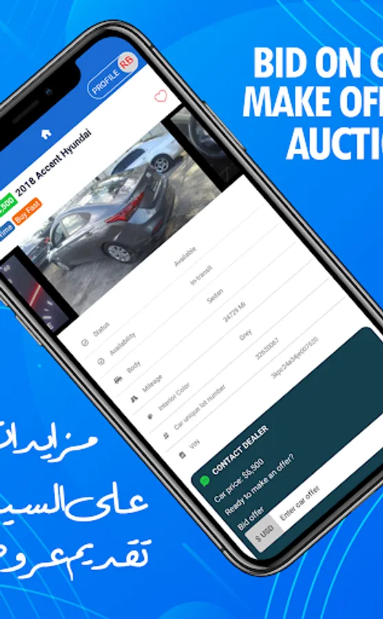 التطبيق الأول من نوعه في العراق والوطن العربي حيث يقدم لمستخدميه امكانية بيع وشراء السيارات عن طريق المزادات العالمية