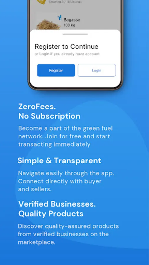 Our app is designed to facilitate communication, collaboration, and transparency. It also features a secured payment gateway, comprehensive tracking and verification system that ensures the biofuel products listed on the platform meet strict sustainability standards. This helps you to make informed choices and supports your commitment to reducing carbon emissions, promoting renewable energy, and achieving a low carbon economy.