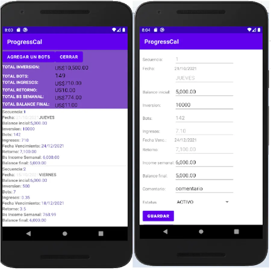 Esta aplicacion fue desarrollada con el objetivo de tener de manera facil y sencilla calculado los valores de Bots, Ingresos y Retornos en base a la inversion realizada en tu moneda local.