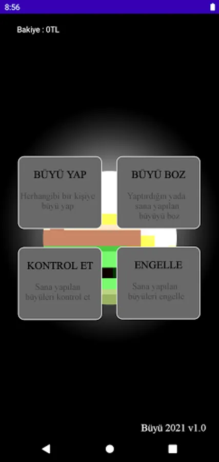 This application, where you can enchant users, starts with the registration of the user. The user who completes the registration sees that the camera is open among the button options. There are 4 different options just above the open camera. These are "Do, Check, Block and Protect" options. The person uploads the information of the person to whom they can make a request, chooses the wish they want to make and completes the process. The person about whom the request is made receives a notification via message, but cannot reach the person who wishes it because the information about who it was done is hidden. If the user accepts, he / she can request protection and check that any request has been made, in order not to make a request until the date determined in the system. The user who chooses one of the buttons can continue the transaction by making a payment based on the balance information in the application for each button. In order for the person to make a request about anyone, he / she must enter the correct information of the person he / she has determined and upload his / her photo. At the specified time, a warning notification is sent to the user via the application.