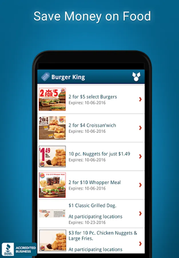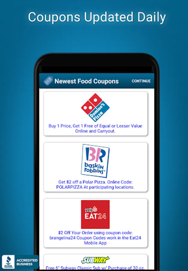 Food Coupons and deals at your favorite restaurants, updated daily - Download now!