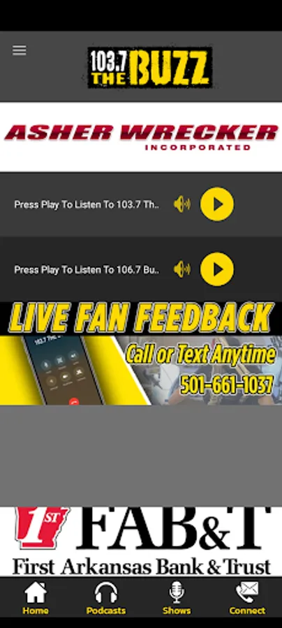 103.7 The Buzz and 106.7 Buz2 are the home of fun and games in Arkansas and online around the world. All day local sports talk with dynamic hosts, exciting guests and compelling content. Stick around outside of our local programming from 6am-7pm for additional shows that are produced locally and cover everything from horse racing to sports wagering as well as golf and hunting and fishing. The Buzz also offers great national programming from our network partner ESPN. 103.7 The Buzz and 106.7 Buz2 are also the home of Arkansas Razorback Football, Men’s Basketball and Baseball. Also appearing on our stations are: Dallas Cowboys Football, Kansas City Chiefs Football, Memphis Grizzlies Basketball, Little Rock Trojans Basketball, High School Football, the NCAA Men’s Basketball Tournament, the CFB National Championship, the Super Bowl and much more. The Buzz is your home for sports and fun in central Arkansas!
