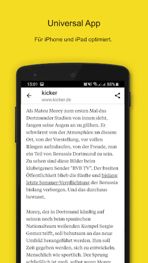 • Angry, sad or excited about news from BVB? With a tip you share your feelings with other users. And follow the live mood of the fan community.