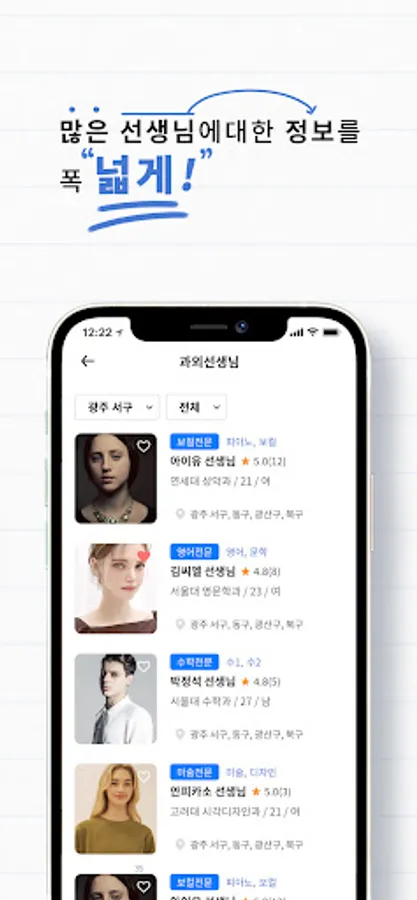 가입비 이용비 모두 무료! 광주 지역 과외 서비스앱 인스터디에서 만나요 ^^